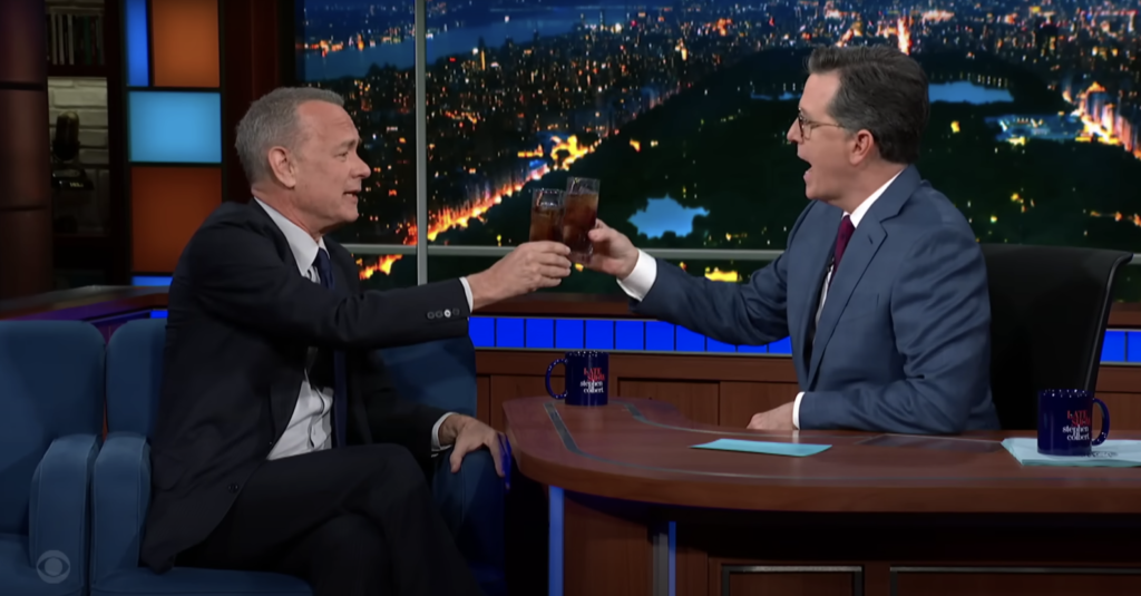 'Strangely, Strikingly, Shamefully Good': Stephen Colbert Surprised to Enjoy Tom Hanks' Unorthodox 2-Ingredient Cocktail, 'Diet Cokagne'