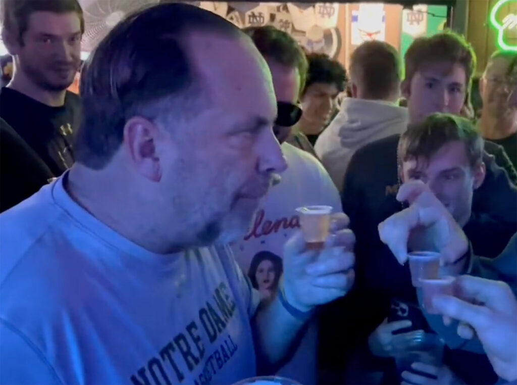 Basketball Coach Mike Brey Toasts Notre Dame Farewell With a Shot of Jameson Irish Whiskey After Final Home Game