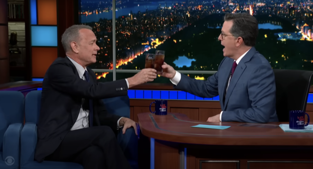 'Strangely, Strikingly, Shamefully Good': Stephen Colbert Surprised to Enjoy Tom Hanks' Unorthodox 2-Ingredient Cocktail, 'Diet Cokagne'